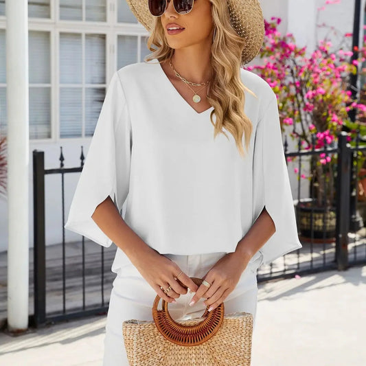 Élodie Twist – Blouse Féminine à Col V Torsadé