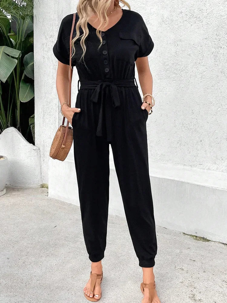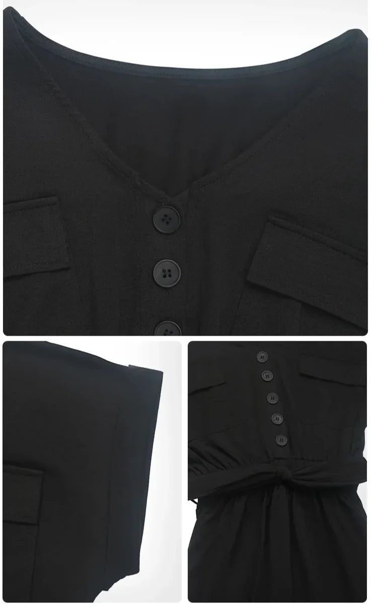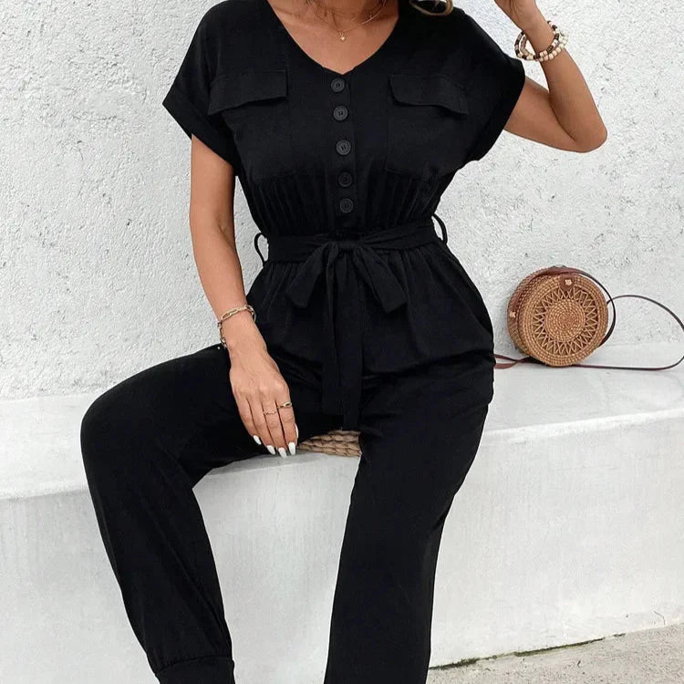 Barboteuse Noire Décontractée à Ceinture