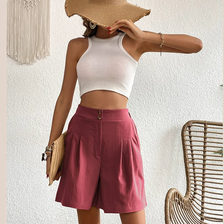 Jocelyn – Short Taille Haute Plissé, Style Estival Léger