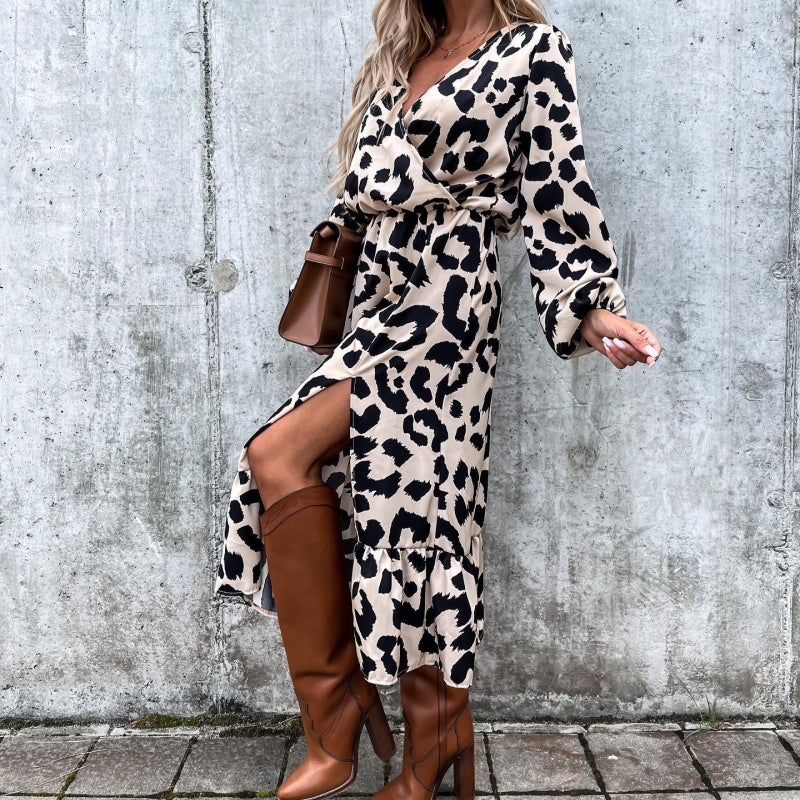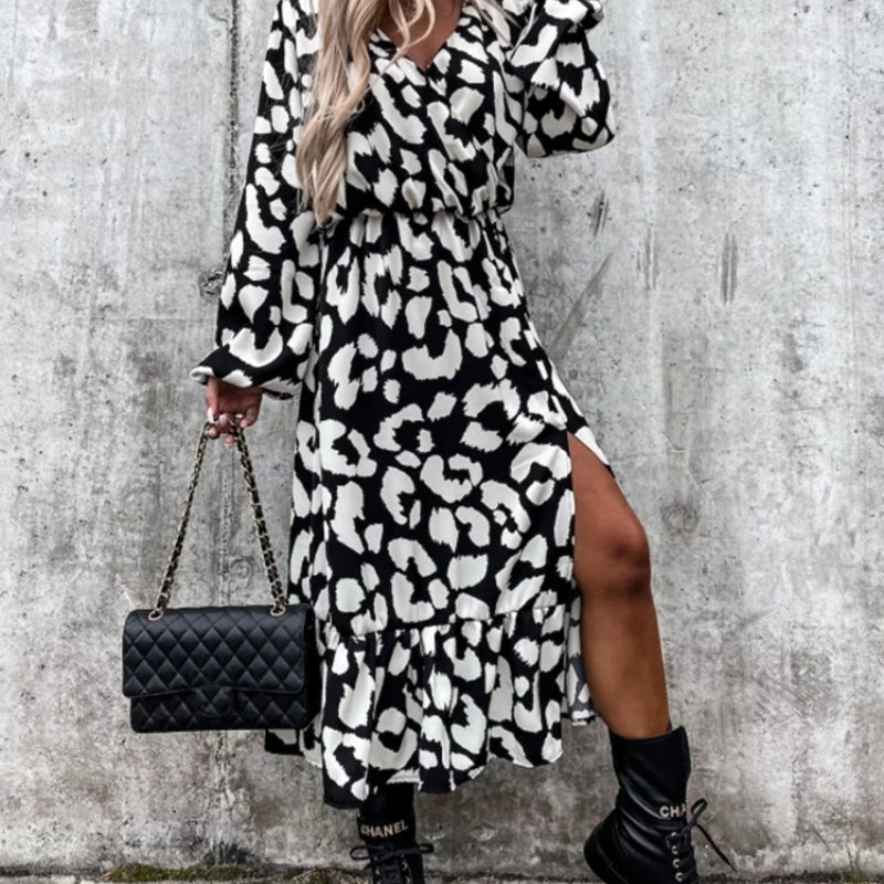 Faites ressortir votre côté sauvage avec la ROBE FENDUE LONGUE IMPRIMÉ LÉOPARD, une pièce tendance au style urbain affirmé. Conçue pour marier audace et confort, cette robe à imprimé léopard offre une silhouette fluide grâce à sa coupe évasée et sa fente subtile.