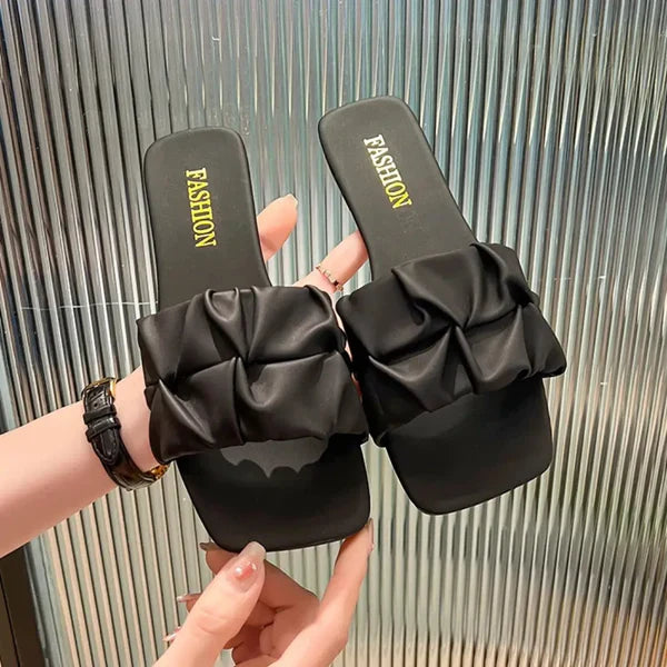 La sandale Viviane noire, avec son design minimaliste rehaussé d’un élégant détail plissé, se distingue comme le choix incontournable pour conjuguer sophistication et confort au quotidien. Sa teinte noire intemporelle s’accorde aussi bien à des tenues décontractées qu’à des looks plus habillés, du matin à la soirée. Sa structure légère et sa semelle plate garantissent un bien-être absolu durant toutes vos escapades d’été, que ce soit en ville ou en bord de mer.
